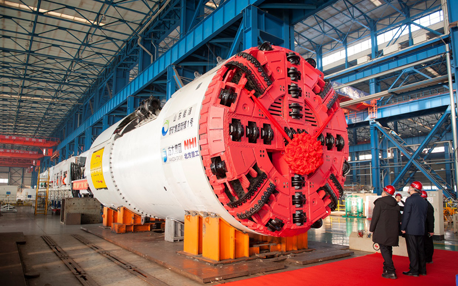 在結(jié)構(gòu)件分廠,弧光閃爍,焊花飛濺,工人師傅們切割下料、組對(duì)焊接,忙個(gè)不停。在隧道掘進(jìn)裝備分廠,臺(tái)州項(xiàng)目盾構(gòu)機(jī)管片安裝機(jī)正在緊張調(diào)試中,即將發(fā)貨。重大部件分廠機(jī)加車間廠房?jī)?nèi)機(jī)聲隆隆,天車在空中往來(lái)穿梭。工人師傅們?cè)跈C(jī)床前或聚精會(huì)神加工工件,或一絲不茍裝夾工件,找正、對(duì)刀,緊張而有序。