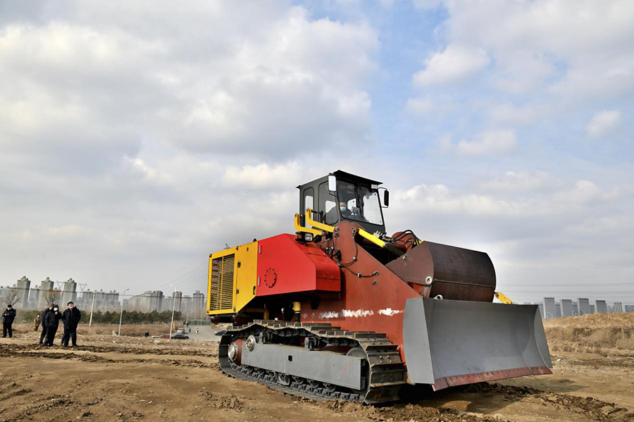 北方重工自主設(shè)計研發(fā)制造 國內(nèi)首臺多功能履帶鏟運機試車成功