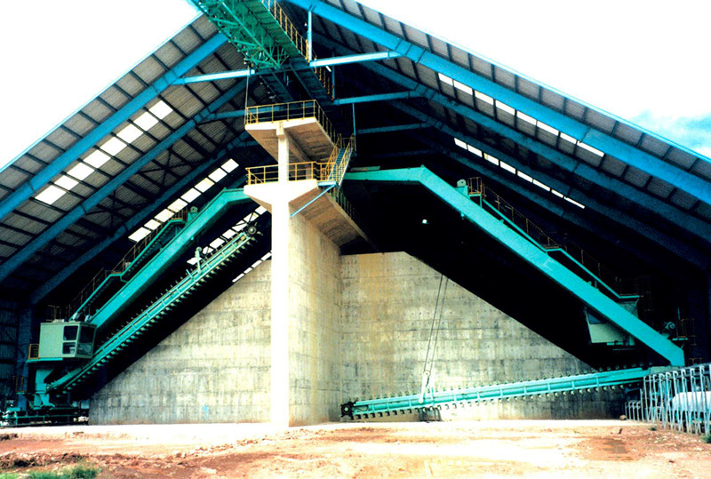 A variety of materials can be arranged in one stock yard, which can span the stock pile and adopt the side reclaiming process.